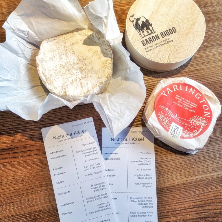 Laibe des Monats: Weichkäseglück aus dem Herzen der Cotswolds und dem Norden Suffolks: Yarlington (King Stone Dairy) und Baron Bigod (Fen Farm Dairy).